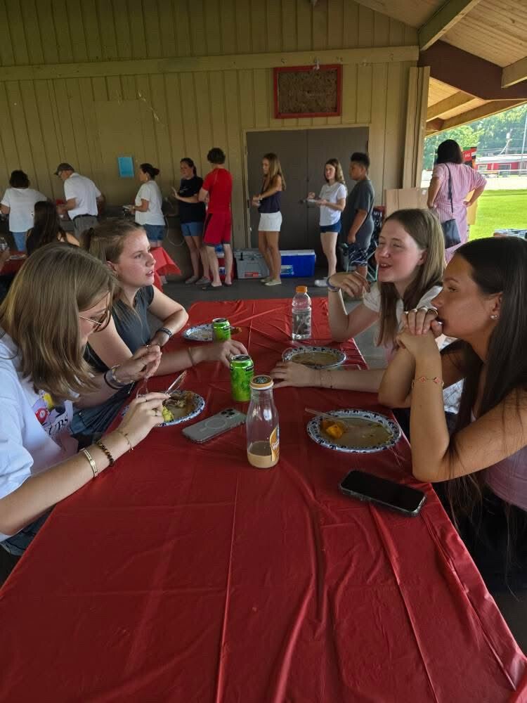 Am Anfang haben wir uns erstmal vorstellt, dann haben wir die Sachen gegessen, jeder hatte etwas typisches aus seinem Land mitgebracht, ich habe Kartoffel Salat gemacht. Danach wurden uns noch ein paar Regeln erklärt und dann haben wir ein Wasserspiel gespielt.